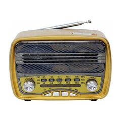 Ρετρό επαναφορτιζόμενο ραφιόφωνο - ηχείο φορητό με δυνατότητα αναπαραγωγής FM/AM/SW, με ενσωματωμένη επαναφορτιζόμενη μπαταρία - λειτουργεί και με μπαταρίες. Εύρος συχνοτήτων. Αναπαραγωγή mp3,κεραία,είσοδος AUX.