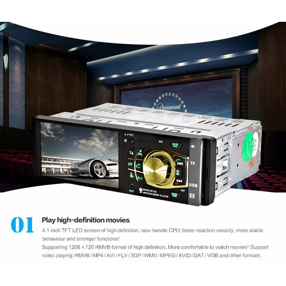 Ηχοσύστημα Οθόνη 4.1" TFT Multimedia MP3 / Mp5 Player 1 din Bluetooth με Τηλεχειριστήριο