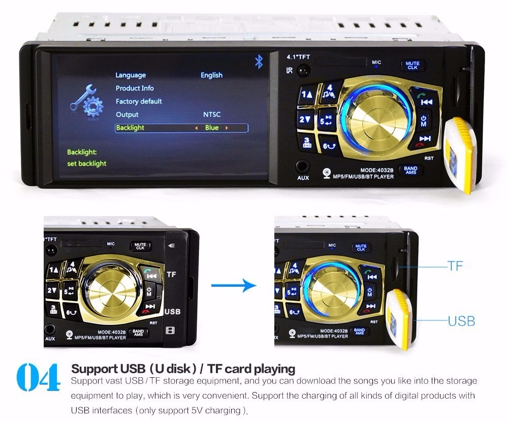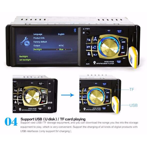 Ηχοσύστημα Οθόνη 4.1" TFT Multimedia MP3 / Mp5 Player 1 din Bluetooth με Τηλεχειριστήριο