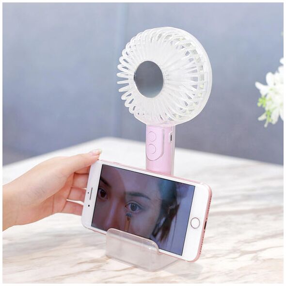 Jane Eyre φορητό αλλά και επιτραπέζιο επαναφορτιζόμενο ανεμιστηράκι με αποσπώμενη βάση για το κινητό σας, καθρέπτη και φωτισμό LED.