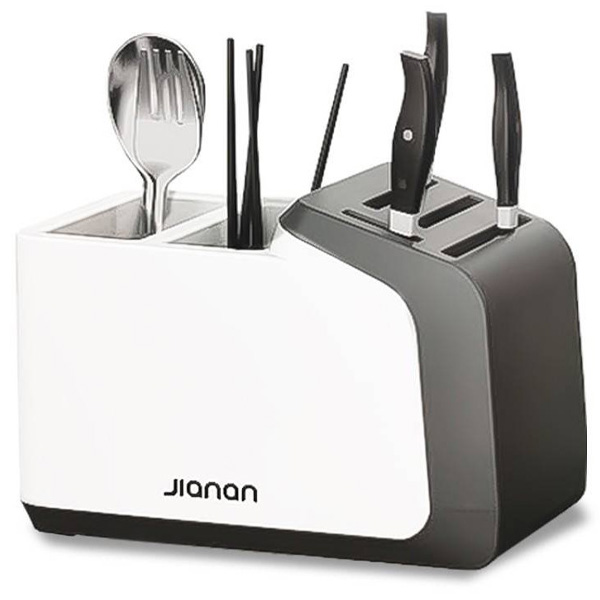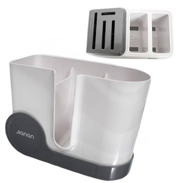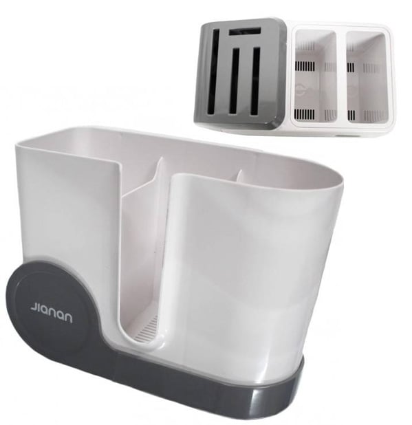 Jianan Πολυλειτουργική Θήκη Πάγκου για Μαχαιροπίρουνα με 2 Ξεχωριστά Διαμερίσματα & Σχάρα Αποστράγγισης