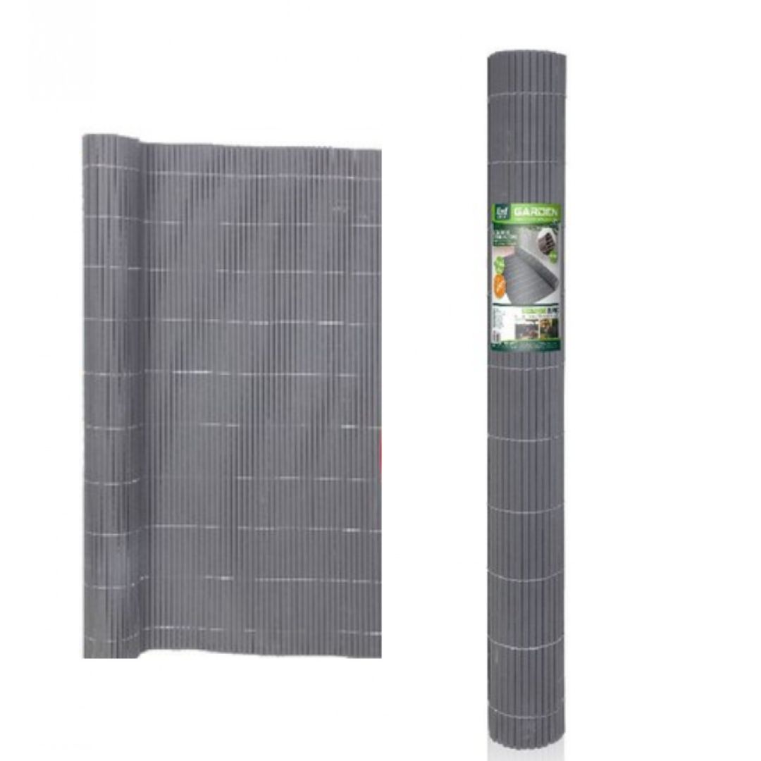 Καλαμωτή περίφραξης PVC 150x500cm σε γκρι χρώμα με πάχος 10mm. Ιδανική για σκίαση, ιδιωτικότητα και διακόσμηση σε κήπο ή μπαλκόνι. Ανθεκτική στις καιρικές συνθήκες και εύκολη στην τοποθέτηση.
