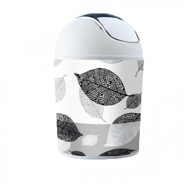 Καλαθάκι - Κάδος Μπάνιου Πλαστικός - Λευκό Γκρι με Φύλλα