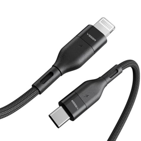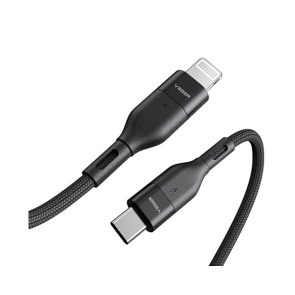 Καλώδιο φόρτισης & μεταφοράς δεδομένων VEGER type-C σε lightning 3A fast charging με ενίσχυμενες άκρες Anti-Bending, συμβατό και με Laptop 1.20m μαύρο