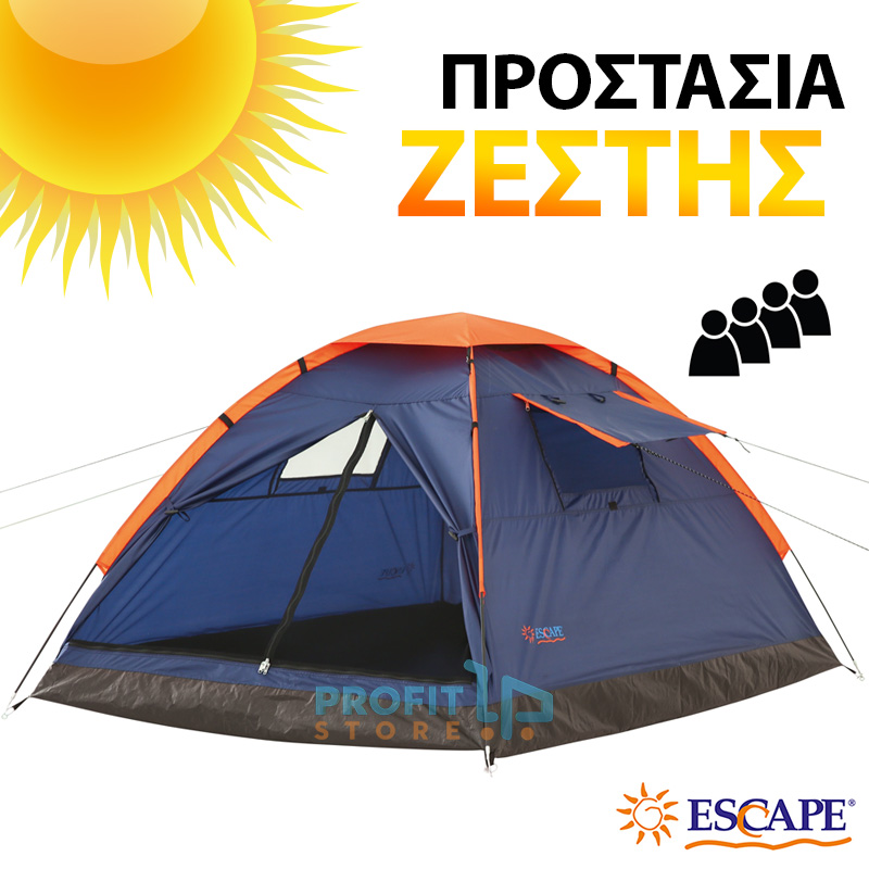 Νέα καλοκαιρινή σκηνή Camping 4 ατόμων, με την εγγύηση ποιότητας της ESCAPE®, που προστατεύει από την ζέστη. Κάντε εξορμήσεις με την παρέα σας στο βουνό ή την παραλία και γίνετε ένα με τη φύση!