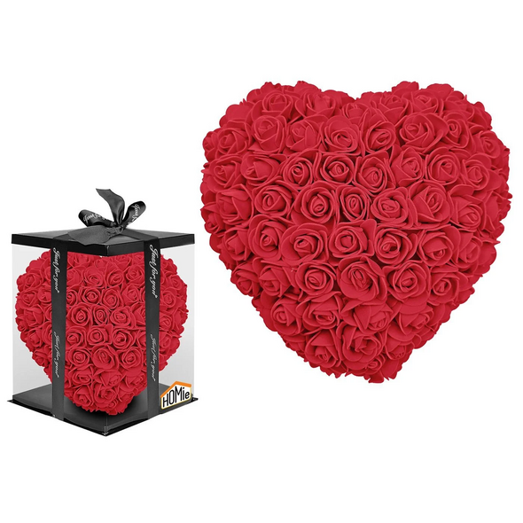 Καρδιά από Τεχνητά Κόκκινα Τριαντάφυλλα 25 cm με Διακοσμητικό Κουτί-