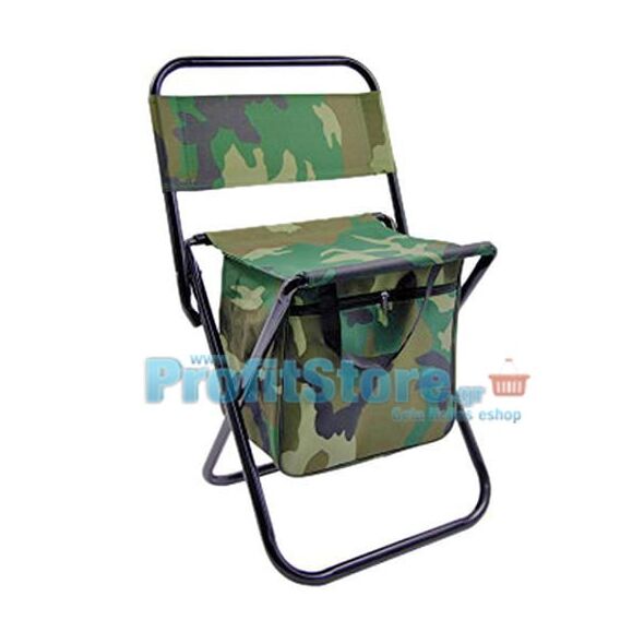 Ελαφρύ, αναδιπλούμενο καρεκλάκι ύψους 36 εκατοστών ( το κάθισμα ) σε χρώμα παραλλαγής με αποθηκευτικό σάκο κάτω από τη θέση, ιδανικό για το κυνήγι ή το ψάρεμα.