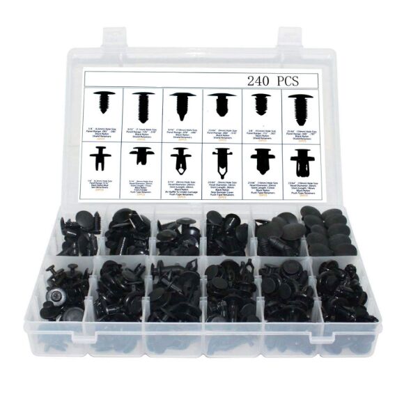 Κασετίνα Πλαστικά Κουμπώματα Κλιπς Μαύρα - σετ 240τμχ. Κλίπ για FORD, TOYOTA, HONDA, BMW, CHRYSLER BUICK, SUBARU, SUZUKI
