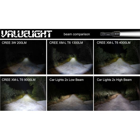 - This torch uses of a CREE XM-L T6 LED, producing very bright beam of light.