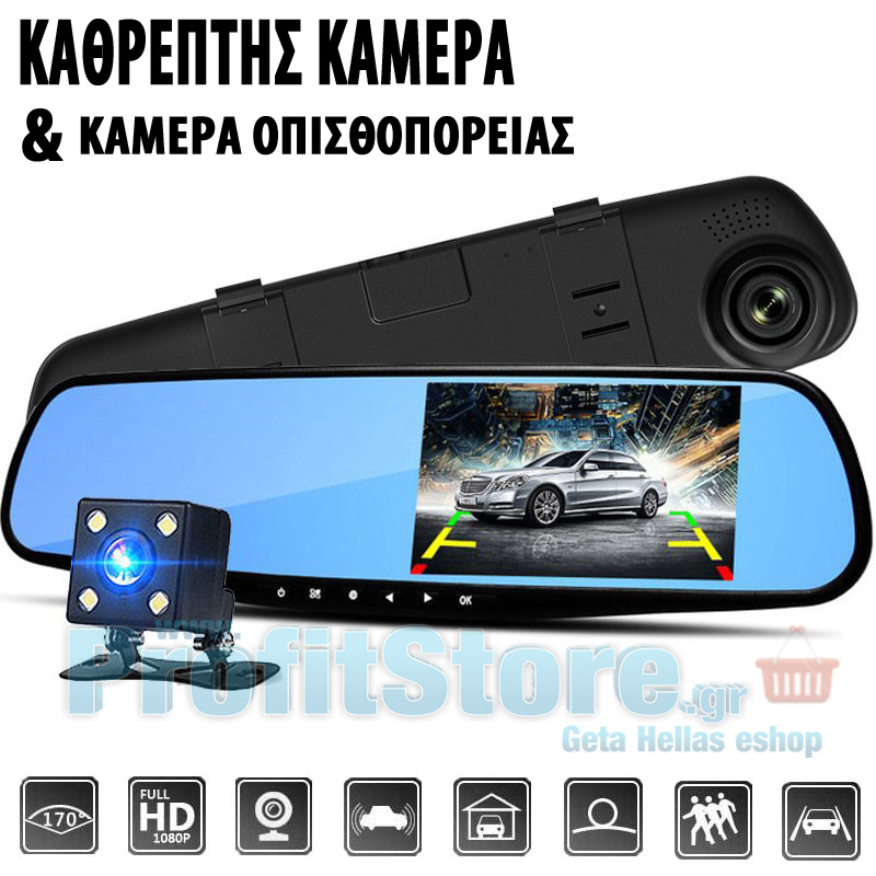 Καθρέπτης Αυτοκινήτου με Οθόνη LCD 4,0'', Κάμερα Καταγραφικό Full HD 1080p DVR, Κάμερα Οπισθοπορείας, Ανιχνευτή Κίνησης & Νυχτερινή Λήψη