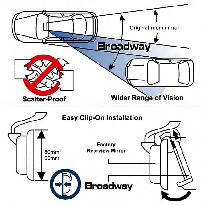 - Τοποθετείται εύκολα πάνω από τον ήδη υπάρχοντα καθρέπτη του οχήματος σας.