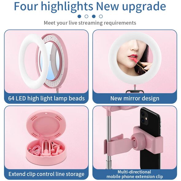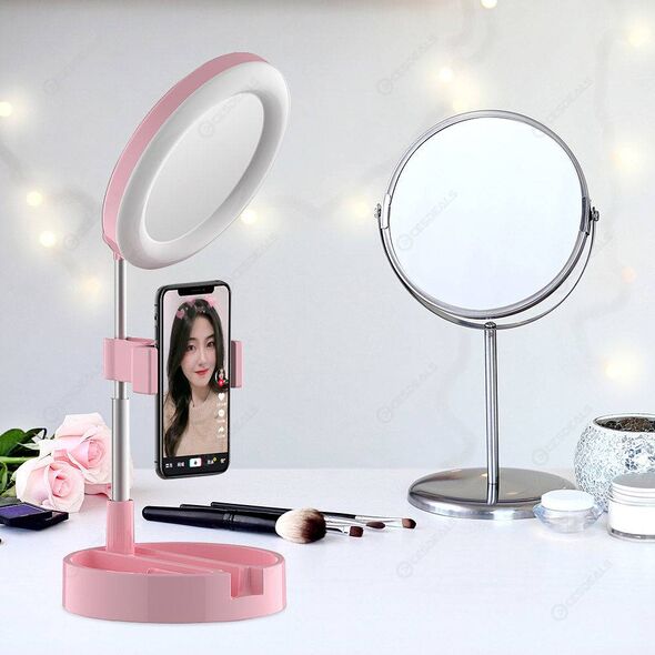 Καθρέπτης Live Streaming Μακιγιάζ με Φωτισμό Δαχτυλίδι LED με Βάση Κινητού 2 σε 1 - Πτυσσόμενο Φωτογραφικό Δαχτυλίδι Make up Mirror w/ Ring light