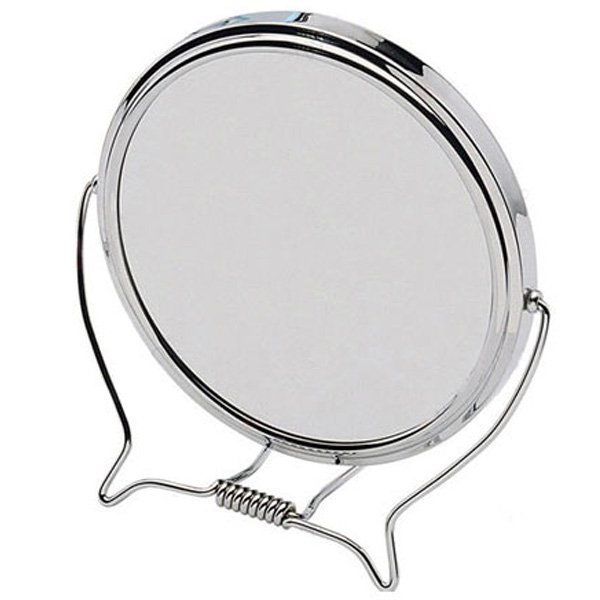 Inox καθρέπτης μακιγιάζ διαμέτρου 17 εκ, 2 όψεων με δυνατότητα περιστροφής 360 μοίρες και μεγέθυνση 3x στη μία όψη.
