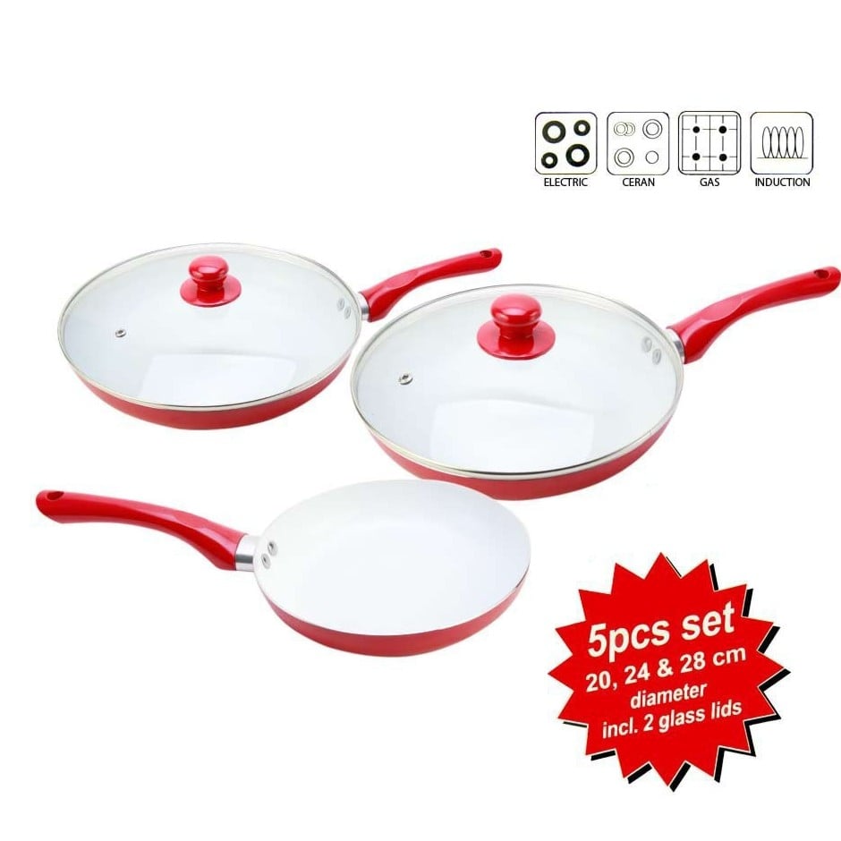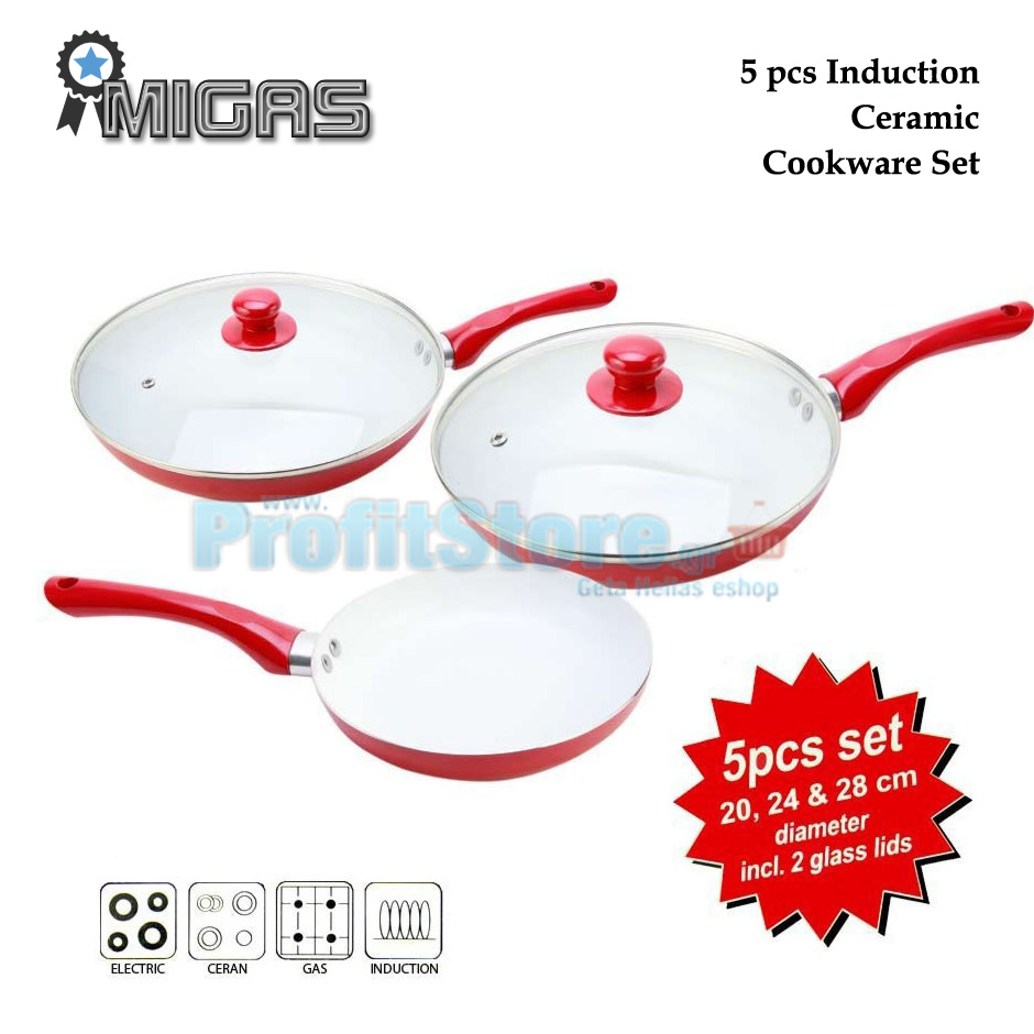 Κεραμικά Τηγάνια με Αντικολλητική Επίστρωση & Γυάλινα Καπάκια MIGAS Ceramic Chef Pan - Σετ των 5 τεμαχίων