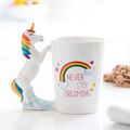 Κεραμική Κούπα 370 ml Μονόκερος, Inspirational Quote Never Stop Dreaming, Λευκή Κούπα Καφέ / Τσάι, OEM