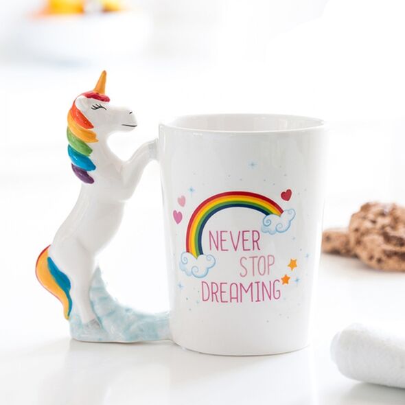 Όμορφη λευκή κεραμική κούπα με χερούλι σε σχήμα Μονόκερου ιδανική για ζεστά ροφήματα καθώς έχει χωρητικότητα 370 ml.