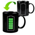 Κάθε φορά που θα γεμίζειτε την κούπα ζεστό τσάι, καφέ ή γάλα, η κούπα αλλάζει χρώμα από μαύρο σε πράσινο δίνοντας την εντύπωση μιας μπαταρίας που γεμίζει ενέργεια.