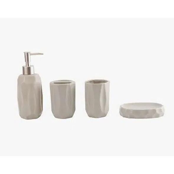 Διακοσμήστε και ταυτόχρονα οργανώστε το μπάνιο σας με αυτό το κεραμικό σετ. Περιλαμβάνει 4 τεμάχια και αποτελείται από Dispenser, Ποτηροθήκη,Σαπουνοθήκη και Θήκη για Οδοντόβουρτσες.