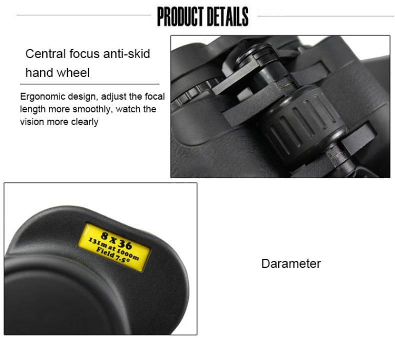 Τα κιάλια 8x36 διαθέτουν υψηλής ποιότητας πρίσματα κατασκευασμένα από άριστο γυαλί Βak-4 για να δίνουν εικόνες με υψηλή αντίθεση. Επίσης οι οπτικές επιφάνειες είναι πλήρως επιστρωμένες με αποτέλεσμα να εξασφαλίζουν απόλυτη καθαρότητα, φωτεινότητα και ευκρίνεια.