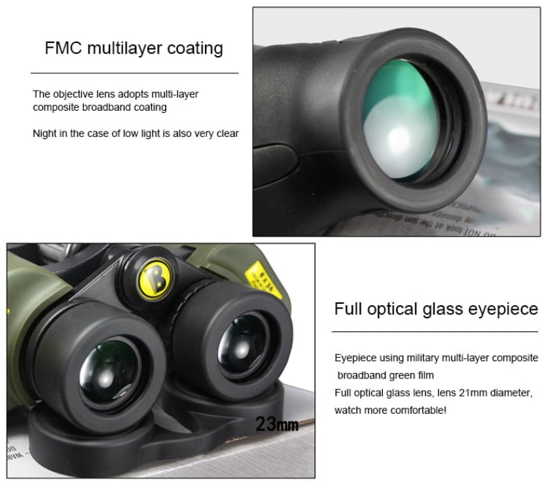 Τα οπτικά είναι πλήρως επιστρωμένα, για να δίνουν εικόνες με υψηλό κοντράστ, ενώ τα υψηλής ποιότητας πρίσματα Bak-4 εξασφαλίζουν καθαρότητα, φωτεινότητα και ευκρίνεια.