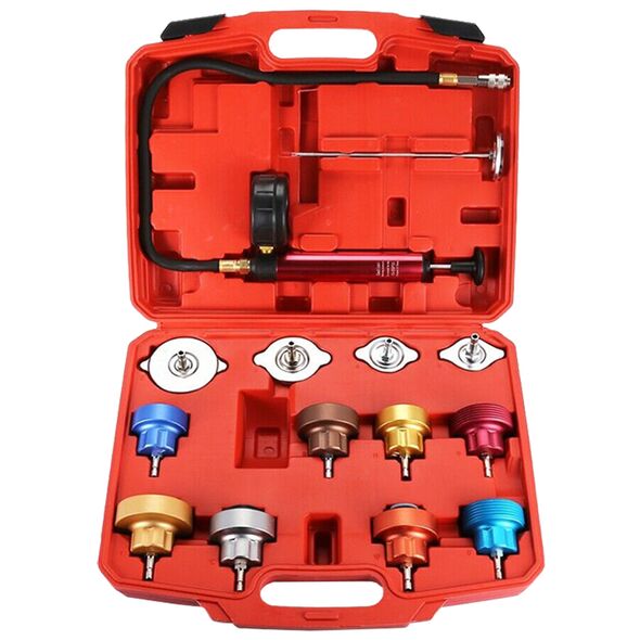 - Υψηλής ποιότητας σετ εργαλείων ελέγχου στεγανότητας ψύξης αποτελείται από 14 τεμάχια και είναι το ιδανικό κιτ εργαλείων για τους ερασιτέχνες καθώς και για τους επαγγελματίες μηχανικούς αυτοκινήτων.