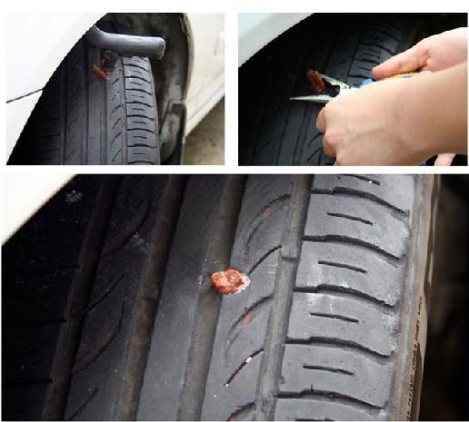 Περιέχει όλα τα αναγκαία εργαλεία που χρειάζονται για την επισκευή του ελαστικού. Περιέχει επιπλέον και υγρό διαλυτικό καουτσούκ για την επισκευή του ελαστικού.