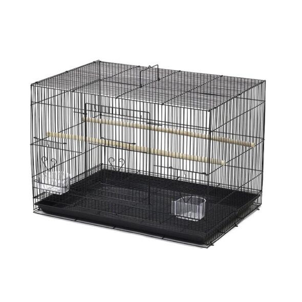 Μεταλλικό κλουβί πουλιών σε μαύρο χρώμα, ιδανικό για μικρά πτηνά. Διαθέτει ανθεκτική κατασκευή, αφαιρούμενη βάση για εύκολο καθαρισμό, πατήθρα και 2 εξωτερικές ταΐστρες για άνετη φροντίδα χωρίς άνοιγμα του κλουβιού. Πρακτική και ασφαλής επιλογή για το σπίτι.