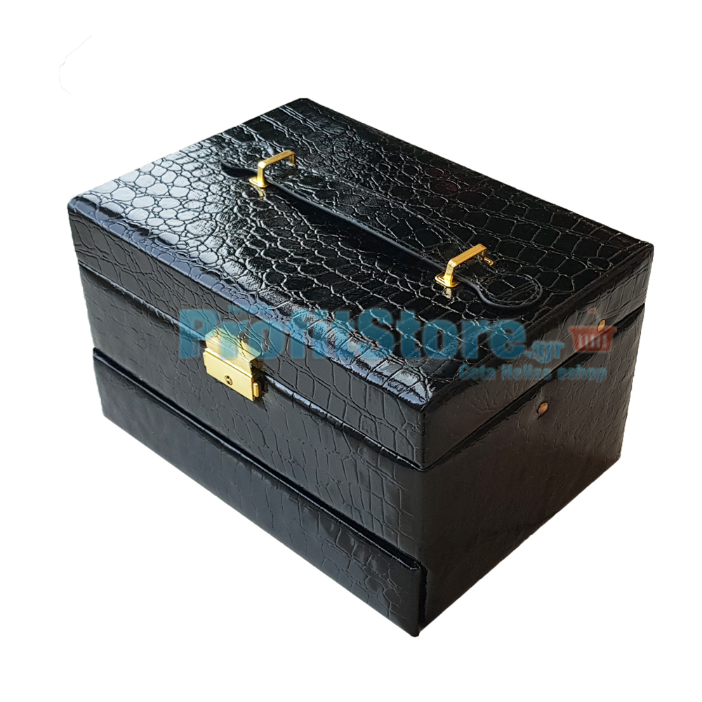Κοσμηματοθήκη - Μπιζουτιέρα Δερματίνης Κροκό Μαύρη - BL-1613