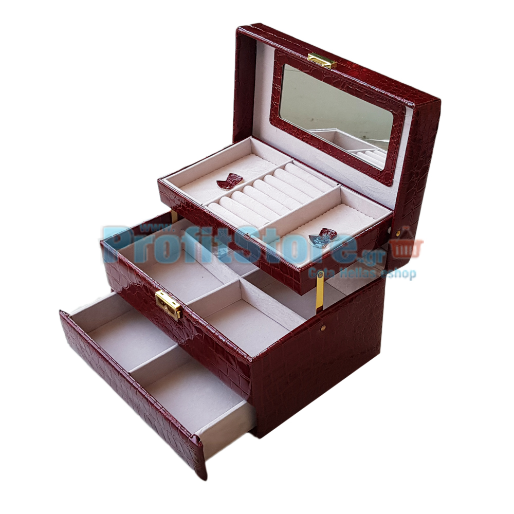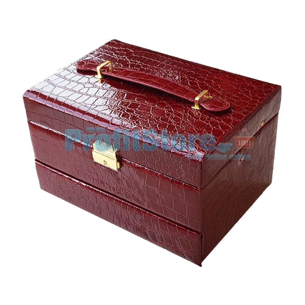 Κοσμηματοθήκη - Μπιζουτιέρα Δερματίνης Κροκό Μπορντώ - BO-1613