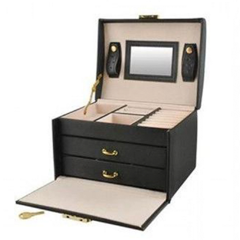 Κοσμηματοθήκη Μπιζουτιέρα Μαύρη με Καθρεφτάκι Συρτάρια και Κλειδαριά 17.5x13.8x13.5cm