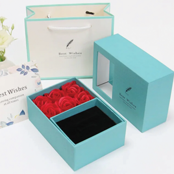 Κουτάκι δώρου με 6 Τριαντάφυλλα, Θήκη για Κόσμημα και Συσκευασία Δώρου 95x150x45mm