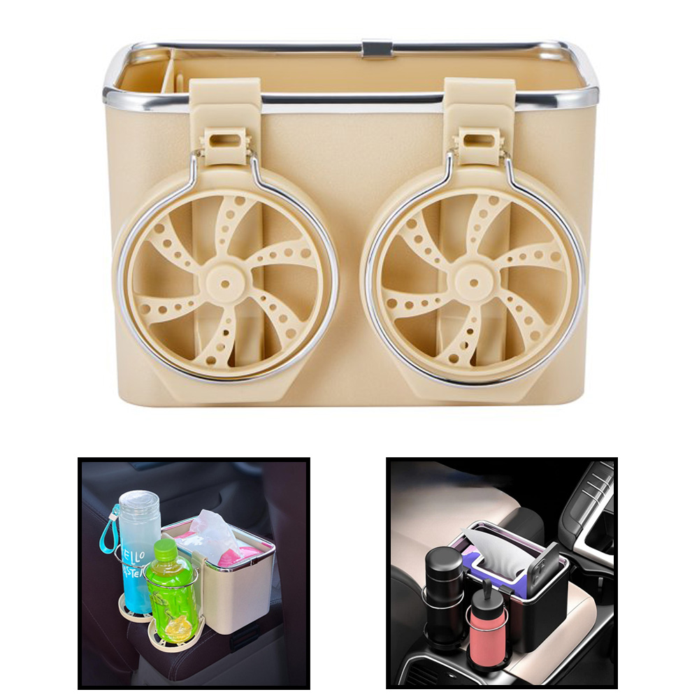 Κουτί Οργάνωσης - Αποθήκευσης Αντικειμένων με Αναδιπλούμενες Αποσπώμενες Ποτηροθήκες για Υποβραχιόνιο Αυτοκινήτου με Βέλκρο 18x11.5x11cm - Μπεζ