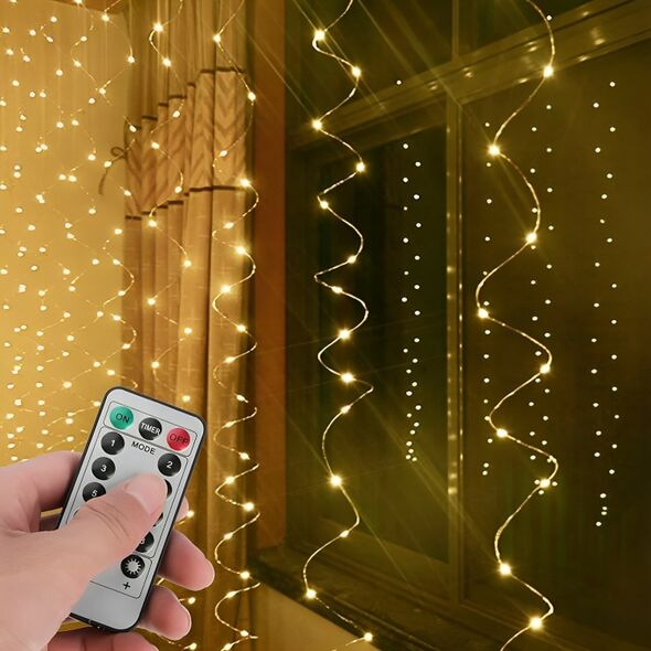 Κρεμαστά Διακοσμητικά LED Λαμπάκια Κουρτίνα - Γιρλάντα USB - 8 Λειτουργίες Φωτισμού & Τηλεχειριστήριο - Θερμό Λευκό Φως - 3x3m