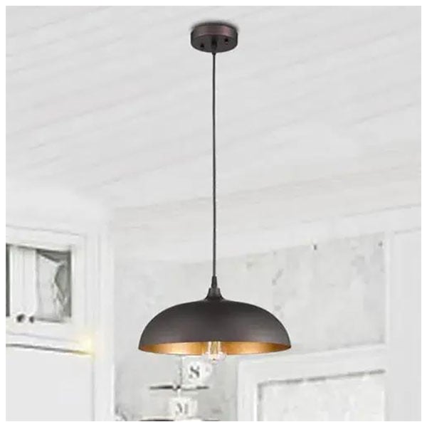 Αυτό το κρεμαστό φωτιστικό με καθαρή επένδυση προβάλλει μια παραδοσιακή απόχρωση σε σχήμα θόλου, όλα φινιρισμένα σε εξαιρετικό γυαλισμένο μαύρο, δημιουργώντας μια ζεστή ατμόσφαιρα σε κάθε χώρο.