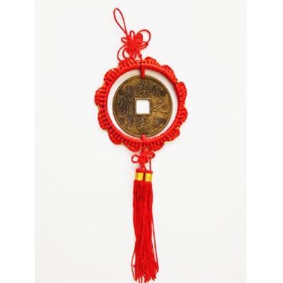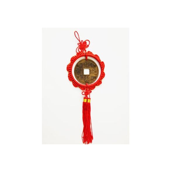 Πρόκειται για αρχαίο κινέζικο νόμισμα-σύμβολο πλούτου, δεμένο κάτω από τον κόμπο της μακροζωίας.