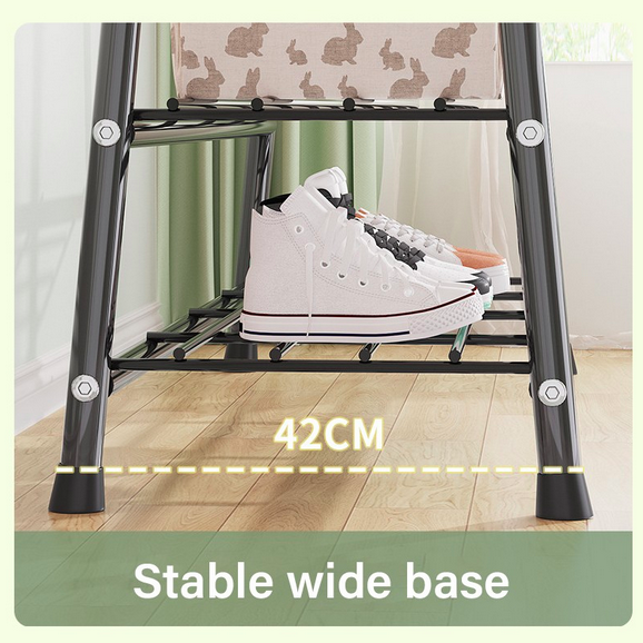 Κρεμάστρα Δαπέδου & Παπουτσοθήκη Οργάνωσης με Γάντζους & 2 Ράφια - Μεταλλικό 150x42x120cm Βεστιάριο Ραφιέρα Άσπρη