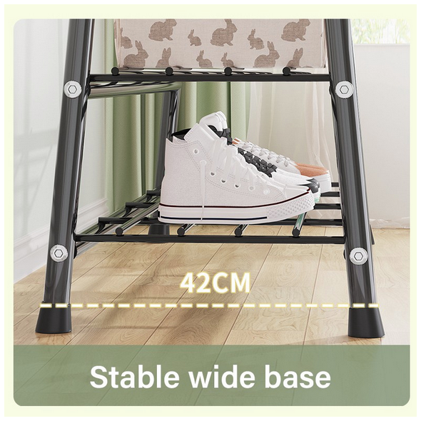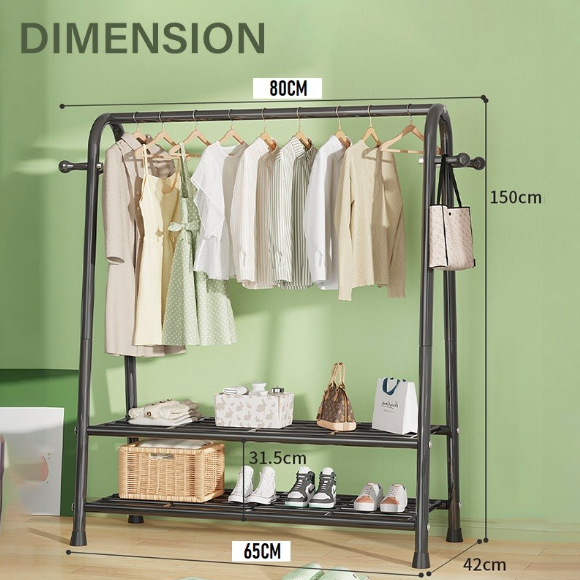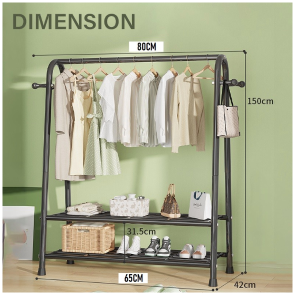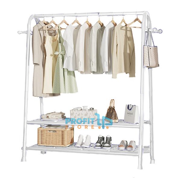 Κρεμάστρα Δαπέδου & Παπουτσοθήκη Οργάνωσης με Γάντζους & 2 Ράφια - Μεταλλικό 150x42x120cm Βεστιάριο Ραφιέρα Άσπρη