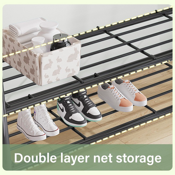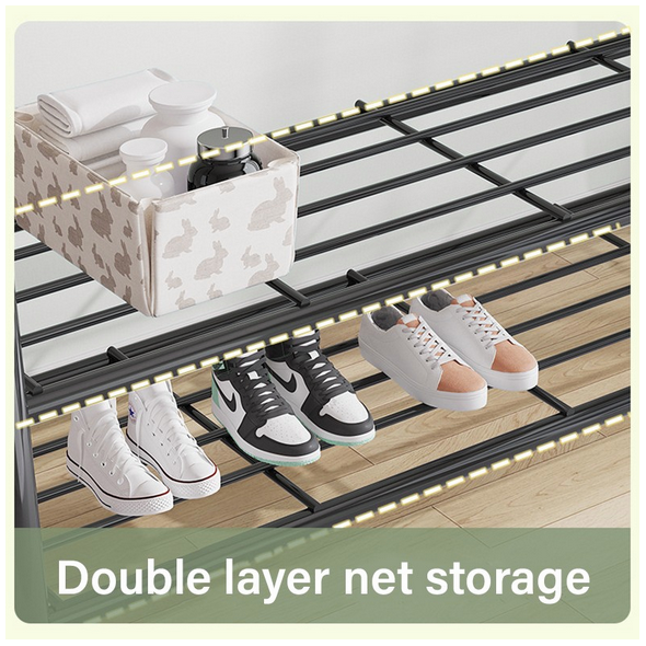 Δεν αποθηκεύει μόνο τα παπούτσια σας, όπως κάθε κοινή παπουτσοθήκη, αλλά σας δίνει τη δυνατότητα να κρεμάσετε τα καπέλα σας, τις τσάντες σας, τα πανωφόρια σας, τις ομπρέλες σας και ό,τι μικροαντικείμενο χρησιμοποιείτε και κουβαλάτε κάθε μέρα πάνω σας.