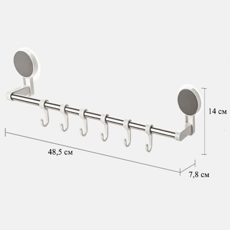 Κρεμάστρα με Βεντούζες & 6 Συρόμενα Πιαστράκια - Θέσεις για το Μπάνιο & την Κουζίνα 48.5x7.8cm