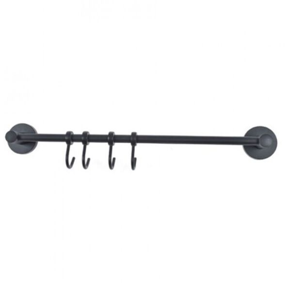 Καινοτόμα κρεμάστρα οργάνωσης για το μπάνιο και την κουζίνα! Διαθέτει 4 γαντζάκια και είναι ιδανική για να κρεμάσετε ρούχα, πετσέτες ή και κουζινικά είδη. Σε μάυρο ματ χρώμα έτσι ώστε να απογειώνει την διακόσμηση και να δίνει μια μοντέρνα όψη στον χώρο σας.