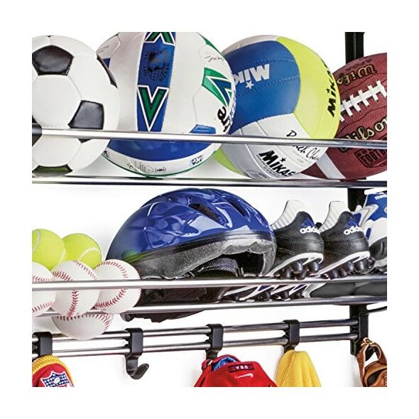 Τοποθετήστε και τακτοποιήστε μπάλες, παπούτσια, ρούχα, καπέλα, ρακέτες, μπαστούνια και όλον τον απαραίτητο εξοπλισμό σας πάνω στα ραφάκια της κρεμάστρας για να έχετε μία άμεση πρόσβαση σε αυτά σε καθημερινή βάση!