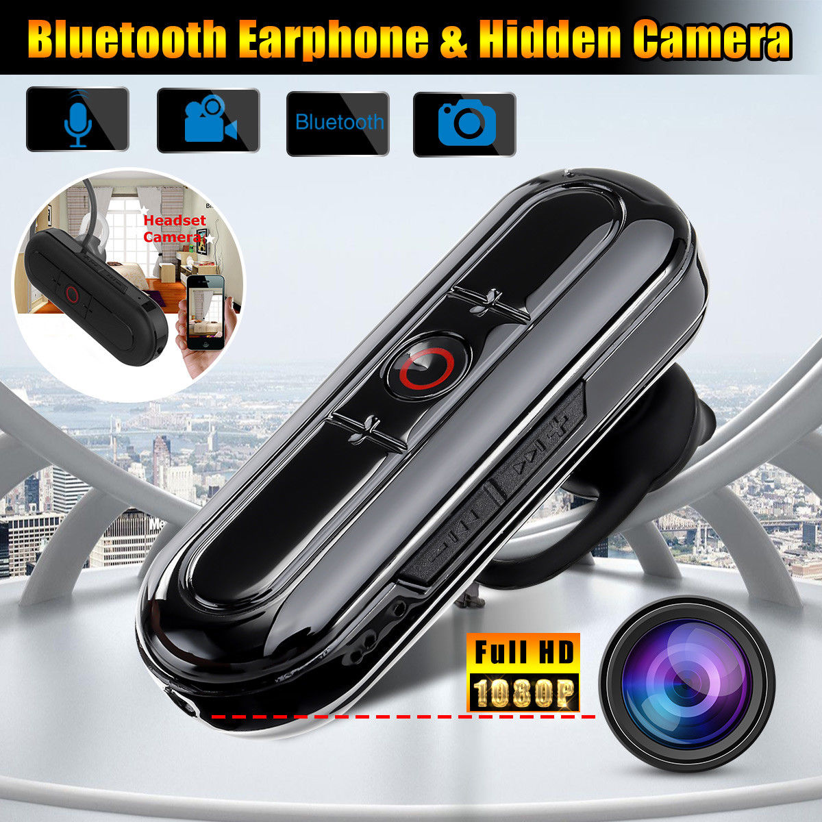 Καταγράψτε τα πάντα, χωρίς να γίνεται αντιληπτοί! Το ασύρματο ακουστικό handsfree Bluetooth με ενσωματωμένη κρυφή Spy κάμερα 1920x1080p Full High Definition είναι το απόλυτο κατασκοπευτικό spy gadget!