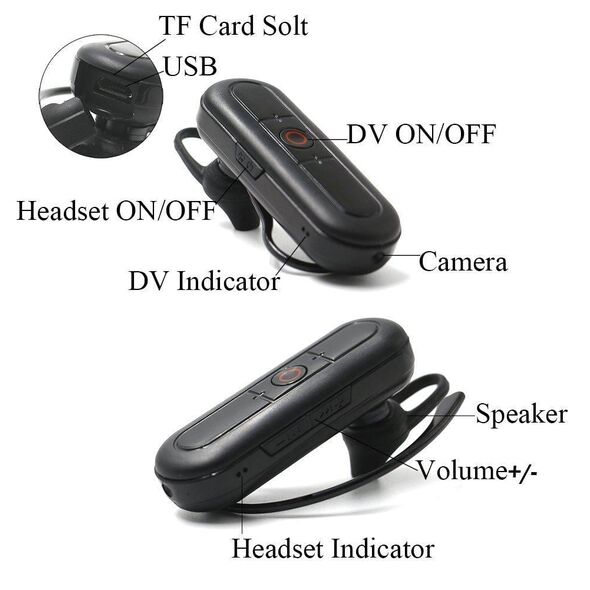 Ο φακός της κρυφής spy κάμερας bluetooth ακουστικά είναι ενσωματωμένος στην άκρη της συσκευής και είναι αόρατος, καταγράφει έγχρωμο video με ήχο σε μορφή καθώς και φωτογραφίες.