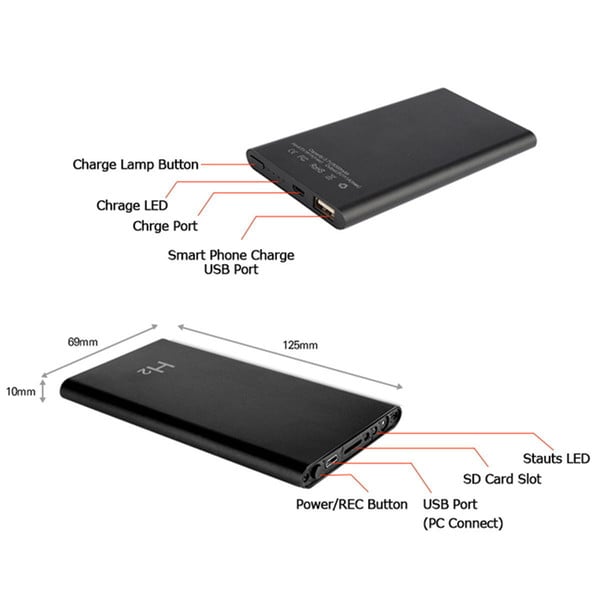 - Μικρό και λεπτό καταγραφικό με ενσωματωμένη κρυφή κάμερα σε Μπαταρία