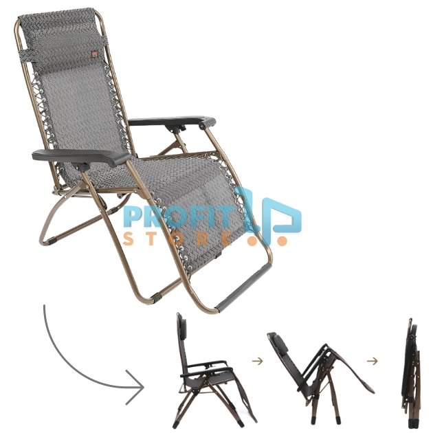 Ξαπλώστρα - Πολυθρόνα Παραλίας με Ρυθμιζόμενη Πλάτη και Μεταλλικό Σκελετό - Γκρι