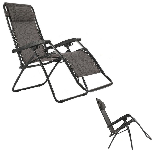 Ξαπλώστρα - Πολυθρόνα Παραλίας με Ρυθμιζόμενη Πλάτη και Μεταλλικό Σκελετό - Μαύρo