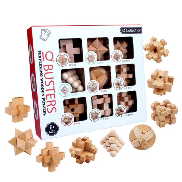 Ξύλινα Παραδοσιακά Κινέζικα Παιχνίδια – Σετ Παζλ με 9 Σχέδια Σπαζοκεφαλιές IQ Collection Busters