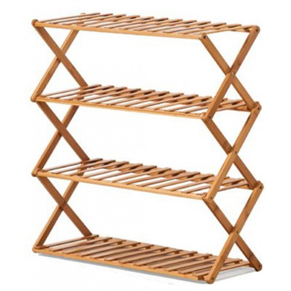 Ξύλινη αναδιπλούμενη παπουτσοθήκη - Μπαμπού με 4 ράφια πολλαπλών χρήσεων