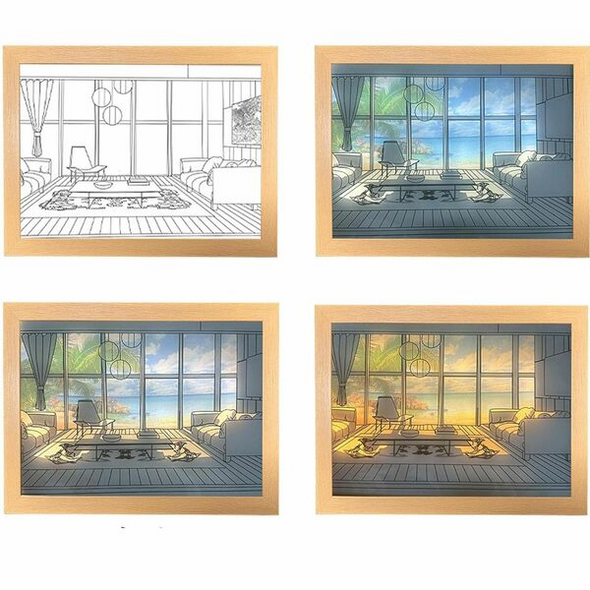 Με ασπρόμαυρο σκίτσο από ένα όμορφο σαλόνι που όταν φωτίζετε μετατρέπετε σε ένα μαγικό τροπικό και γαλήνιο τοπίο!