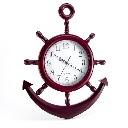 Ξύλινο Ρολόι Τοίχου Quartz σε σχήμα Ναυτικής Άγκυρας